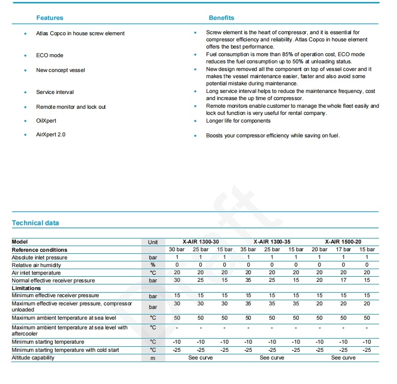 Unit equipped with Atlas Copco patented inhouse screw element, DCEC GIV diesel engine, new concept vessel, Xc4004 intuitive controller and
